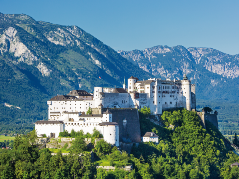 【薩爾斯堡要塞】始建於西元1077年,是歐洲規模最大且保存最完整的中世紀城堡之一,從薩爾斯堡市區任何角落都能欣賞到它壯闊的身影。