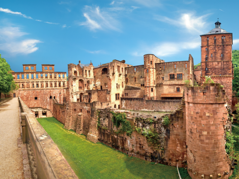 【海德堡古堡】城堡最早的建築可追溯至1214年,乘坐纜車抵達海德堡古堡,瞭望台可俯瞰內卡河及海德堡全景。城堡內最出名如:建於1735年的大酒桶(Großes Fass),是當時德國最大的酒桶之一,可容納超過22萬公升的葡萄酒。紅色砂岩的建築「腓特烈翼」(Friedrichsbau),是整個城堡內最為華麗的建築和藥房博物館。