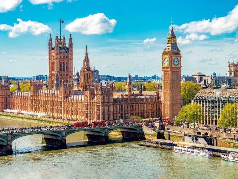 【倫敦市內觀光】乘車途經倫敦地標:塔橋、倫敦古堡、國會大廈及舉世知名的大笨鐘、首相府、特拉法加廣場等名勝。繼而前往著名之西敏寺及白金漢宮,並於門外拍照。