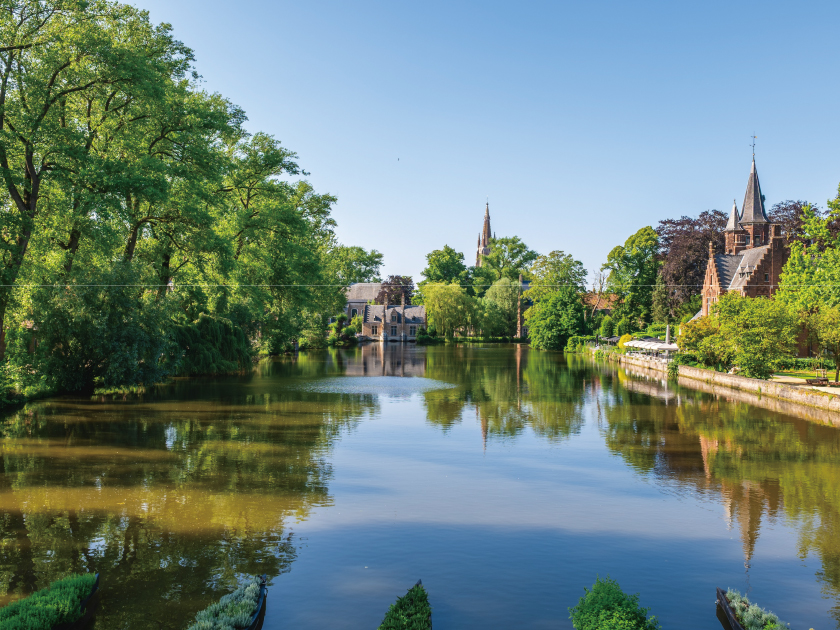 【愛之湖】用來控制布魯日的水流量的人工湖泊,現成為布魯日最美的一角,讓遊客流連忘返。皇家貝居安會院設立於13世紀,坐落在風景怡人的愛之湖邊,院內草木繁茂,白牆紅瓦,讓人感到寧靜。