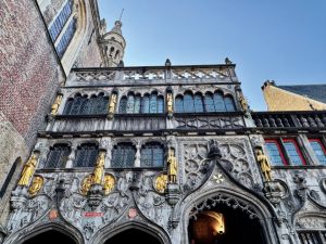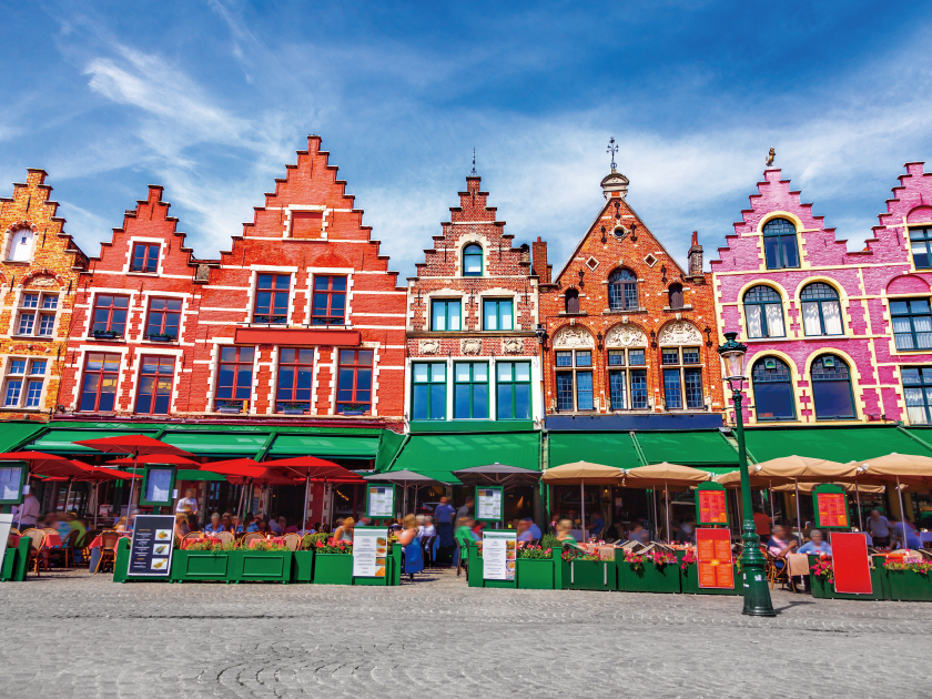 【市集廣場】有著一排特色階梯形山牆建築,這排房子可以說是布魯日的經典明信片場景。鐘樓可以說是布魯日的地標,不管走在哪個街道抬頭都能看到它的蹤影。