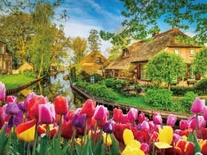 【羊角村】素有「綠色威尼斯」之稱,當地居民曾挖掘地底下的泥煤出售賺錢,不斷開鑿土地後形成一道道狹窄溝渠,居民便順道把溝渠拓寬方便運送物資。
