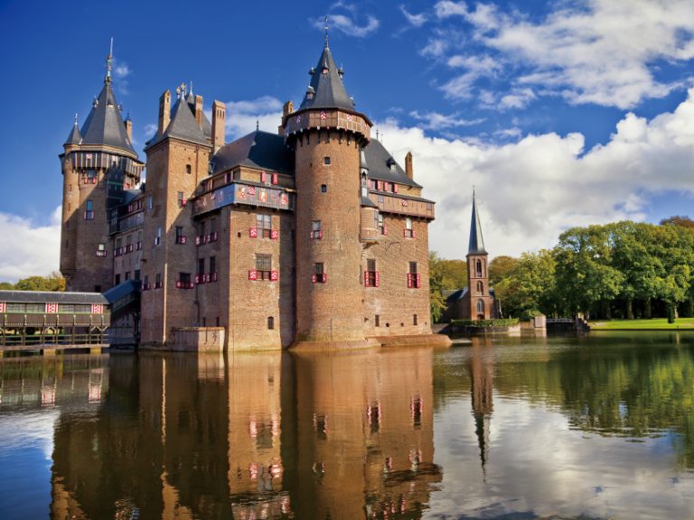 【德哈爾古堡】位於荷蘭烏特勒支郊外,是一座典型的新哥德式建築。古堡古典中透露著絲絲神秘。德哈爾古堡彷彿是童話中的夢幻城堡,擁有宮廷式的花園和護城河,是荷蘭保存最完整的古堡建築,受到眾多年輕男女的追捧,成了拍攝婚紗紀念照片的理想場所,也是荷蘭深度旅遊的必訪景點。