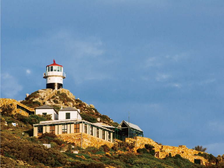 【好望角】名聞世界,進入好望角自然保護區,安排登山纜車,登上古老燈塔前方,凝視弧形海洋,更可觀看大西洋及印度洋之交匯處,該處冷暖流聚合,波濤洶湧海天一色,令人心曠神怡。