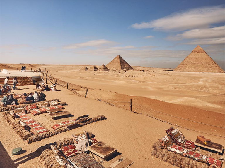 位於吉薩金字塔景區內,是欣賞金字塔全景的絕佳地點。這間露天餐廳提供傳統埃及輕食與飲品,賓客可一邊享用美食,一邊飽覽雄偉的金字塔景觀。餐廳以其無與倫比的視野和舒適的休憩環境深受遊客青睞。