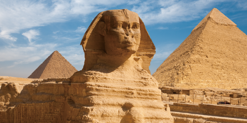 位於埃及吉薩高原,是世界七大奇蹟之一,包含了著名的胡夫金字塔、哈夫拉金字塔和孟卡拉金字塔。這些金字塔建於公元前2580年至公元前2560年間,展示了古埃及的建築技術和宗教信仰。胡夫金字塔是三座金字塔中最大的一座,原本高約146.6米,至今仍是世界上最高的古代結構。金字塔的建造過程至今仍是考古學者研究的熱點,許多理論探討了其建築方法和用途。