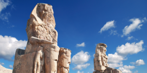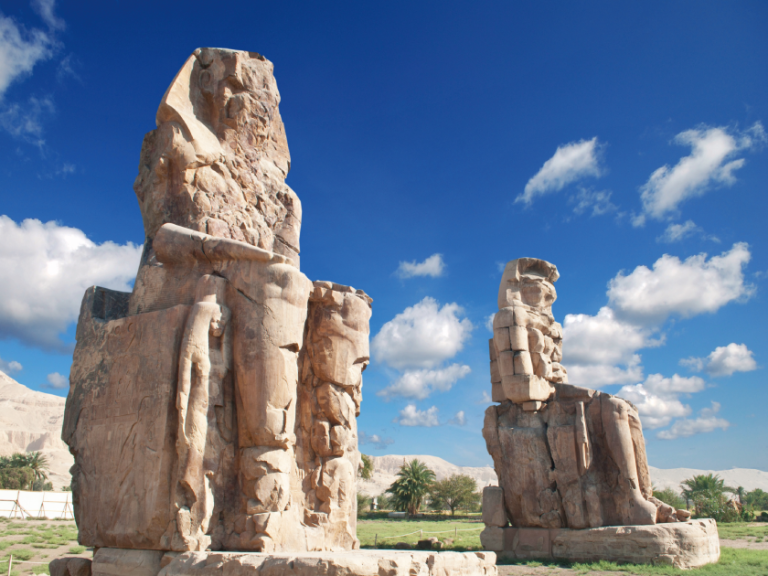 【孟農巨像】高約18公尺,孤獨矗立在沙漠中的孟農巨像,僅供外觀拍照。