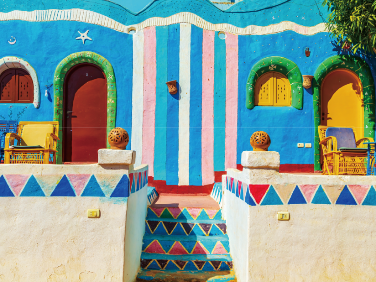 位於埃及南部的努比亞地區,鄰近尼羅河,這裡擁有豐富的歷史和文化。努比亞人以其獨特的傳統和習俗而聞名,村莊的建築多為色彩鮮豔的泥磚房屋,屋頂多呈圓形,展現出當地的藝術風格。