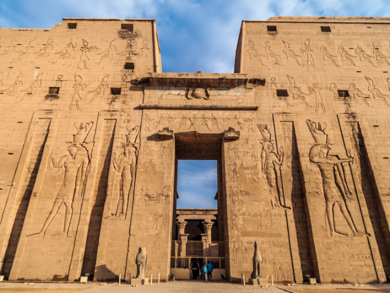 位於埃及尼羅河西岸,建於公元前237年至公元前57年間,是奉獻給古埃及神祇霍魯斯(Horus)的壯麗神廟。這座神廟是保存最完好的古埃及神廟之一,以其精美的浮雕和宏偉的建築而聞名。神廟的建築風格融合了古埃及的宗教和藝術特色,內部裝飾著描繪神話故事和宗教儀式的浮雕。可以在這裡欣賞到神廟的巨大柱子和壯觀的庭院,感受到古埃及宗教的神秘與壯觀。