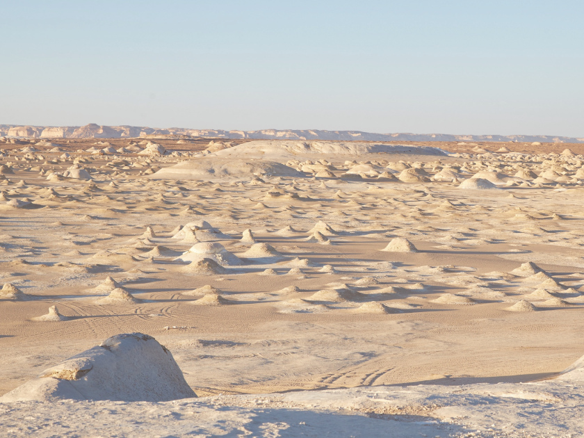 【白沙漠】大自然鬼斧神工造就的奇景,雪白的沙丘與周邊黃色沙漠形成強烈對比。風化形成的白色岩石千姿百態,遍布著蘑菇石、駱駝岩、雞冠石等獨特地貌,令人嘆為觀止。