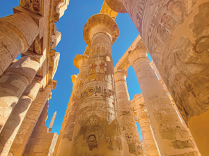【丹達拉神殿】以精緻裝飾、神祇描繪、神秘象形文字及令人驚嘆的天文天花板壁畫聞名,供奉愛神、生育女神與音樂女神哈索爾,保存完好的湛藍色彩令人印象深刻。