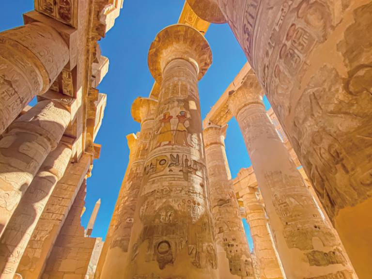 【卡納克神殿】世界上最大的露天古蹟,保存有埃及現今最高的方尖碑。相傳每年尼羅河漲潮的時期,卡納克神殿的三個神明會乘船到這裡接受眾人的供奉與朝拜。