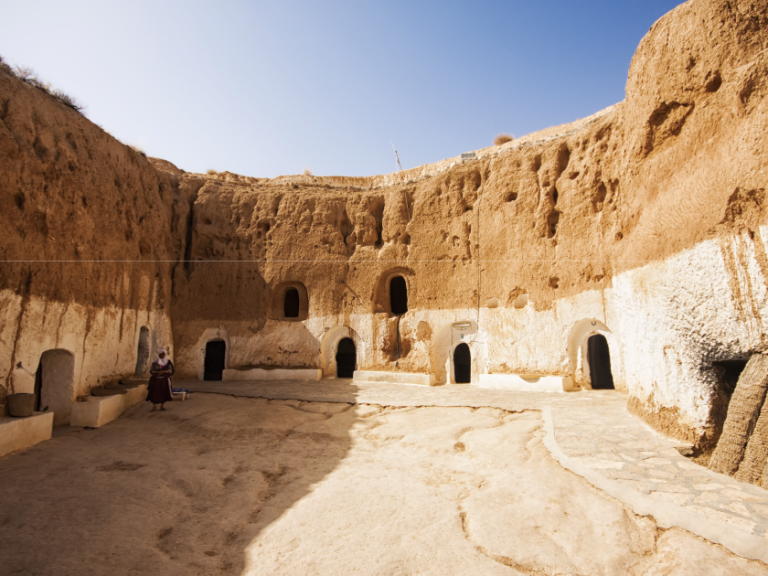 【馬特馬它】突尼西亞中部高原「柏柏爾」人的聚居地。當地人在山石中挖掘洞穴而居,這些洞穴不僅能遮避酷熱的陽光,還可防止風沙侵襲,四季維持舒適常溫,冬暖夏涼。行程特別安排柏柏爾人家訪。