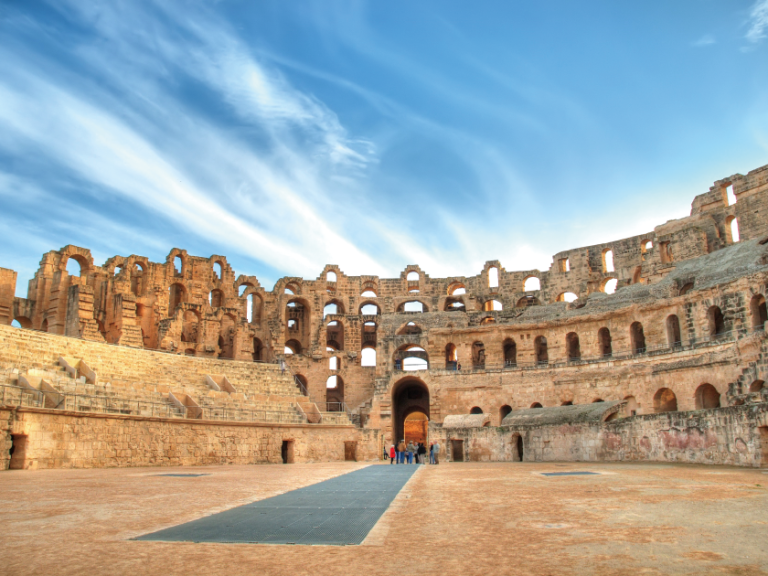 【伊利捷】此城於公元3世紀達至鼎盛,曾有三萬多人居住。參觀被列為世界文化遺產的競技場,被譽為「非洲的羅馬鬥獸場」,長148公尺、寬122公尺、高三層,可容納三萬觀眾。此處曾是羅馬帝國懲治異教徒及奴隸的刑場,保存至今仍十分完整。