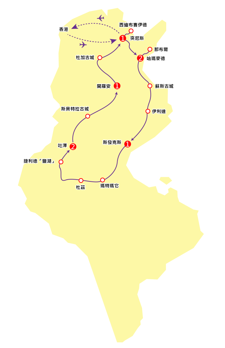 航機於是日抵達突尼斯後,隨即展開觀光。