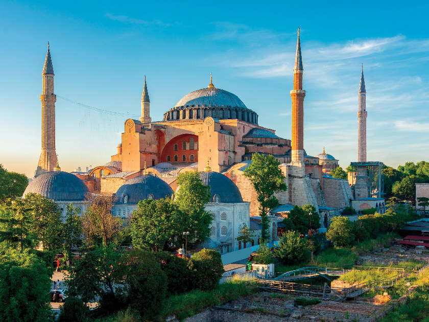【聖蘇菲亞大教堂】揉合了基督教與回教色彩的聖蘇菲亞大教堂,此為拜占庭式建築的傑作,於公元537年興建,內裡富麗堂皇,且被很多藝術歷史學家評為世界第八大奇蹟。