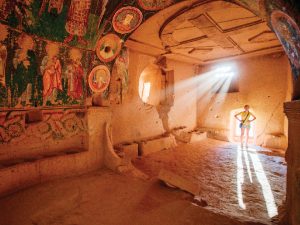 【居里默】Goreme 的意思是「讓你看不見」(You cannot see here),能讓阿拉伯人看不到躲在洞穴社區中的基督徒,靠的是在巨石中挖出居住和牲口家畜的洞穴及石中教堂。