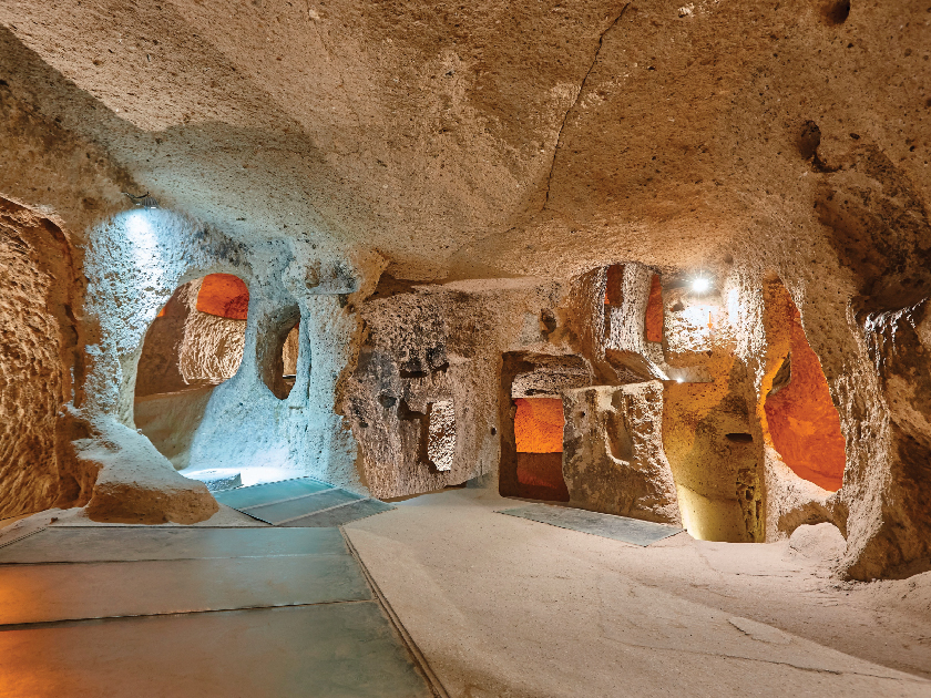 【凱馬克利地下城】在君士坦丁大帝將基督教列為國教之前,羅馬軍隊時常鎮壓基督教徒,當年許多虔誠的教徒、修道士紛紛地逃難至加柏都斯亞,他們發現加柏都斯亞的岩石非常適合挖鑿建屋,而這裡複雜的地形更適合躲避羅馬軍隊的追殺,於是他們在這裡定居,就地將岩石改造成住屋、教堂、修道院,並向下挖掘避難用的地下城市,到了西元七世紀,阿拉伯人入侵,基督教徒再度受到迫害,許多人跑到加柏都斯亞地區躲避,到了十一世紀,加柏都斯亞地區已經有超過一千個宗教性的建築存在。