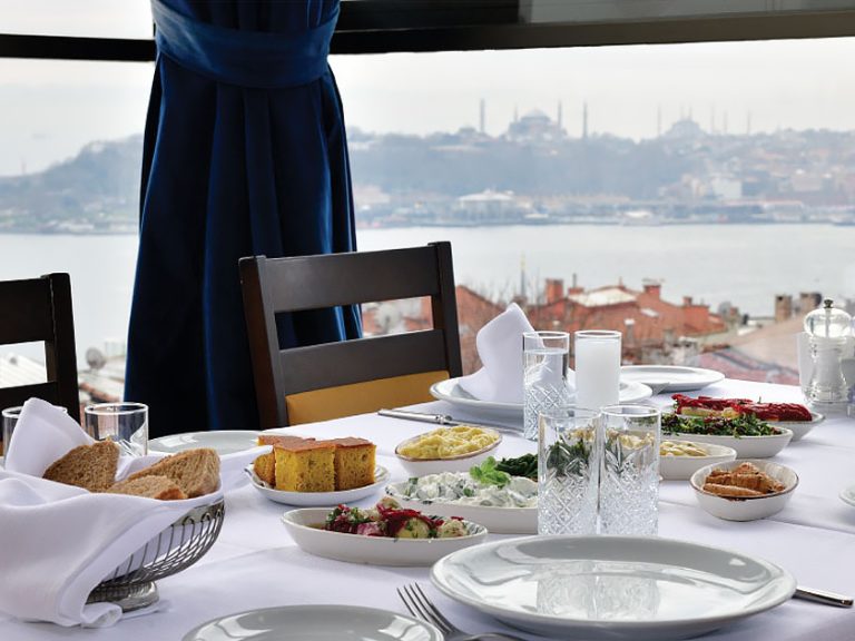 Haliç View 餐廳坐落於伊斯坦堡最具特色且迷人的區域之一,提供賓客一個真正與眾不同的用餐環境,伴隨著令人難忘的金角灣絕美景觀。餐廳精心打造高雅的用餐體驗,菜單選擇豐富多元,從最少3道菜至多達5道菜不等,包含美味的牛排、雞肉與海鮮等多樣選擇。每一道佳餚皆體現創意十足且獨樹一格的烹飪理念,並在壯闊的全景視野中完美呈現。