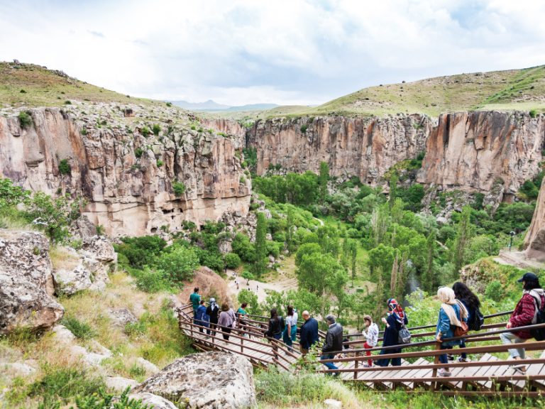 【伊赫拉拉峽谷健行】被譽為土耳其最佳健行徑之一,全長約14公里,不同於卡帕都斯亞其他峽谷近似月球表面的黃土紅石地貌,這裡原是拜占庭時期基督徒的隱修地之一,留下了許多彩繪的石窟教堂。從伊赫拉拉村出發,一路順著Melendiz Suyu溪流,沿著峽谷行走,風格不同的修道院和教堂會映入眼簾,其中包括芬芳教堂Kokar Church等。