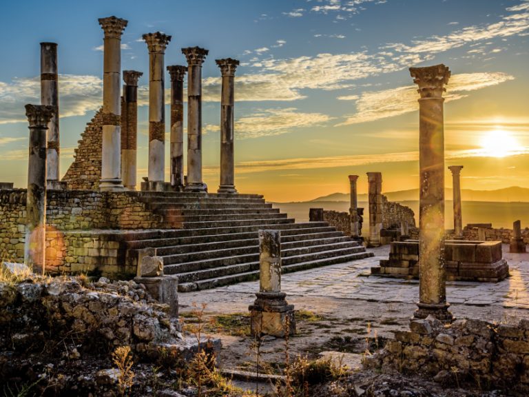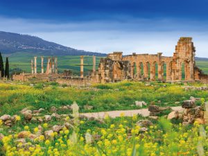 【瓦魯⽐利斯】建於西元前3世紀,曾是「茅利塔尼亞王國」首都,也曾是羅馬帝國在北⾮的行政中心。1755年曾經遭到里斯本大地震的損毀,1914年起,考古學家開始研究出土的遺跡和⽂物,遺址內有宏偉古羅馬建築群和數幅美麗的馬賽克鑲嵌畫,1997年被選為世界文化遺產的古羅馬遺跡,19世紀甚至被當地人以為是蓋金字塔的同一群人留下的遺跡,被稱為「法老王的城堡」。