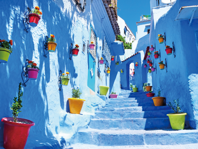 又被稱為『藍白山城』,建於 15 世紀,本是西班牙的殖民地,直到 1956 年才回歸摩洛哥,因此揉合了摩洛哥及西班牙的文化,是一個多元文化的小鎮。更被 Lonely Planet 評為全球最浪漫城市之一。