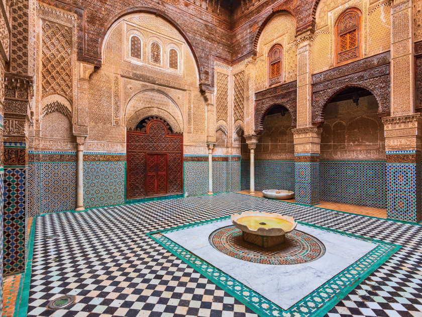 【費斯】摩洛哥四大古城之一,城內聳立超過兩百座清真寺及千家以上傳統工藝店。舊城區內迂迴小巷,彷如迷宮,展現出獨特的傳統文化及歷史。