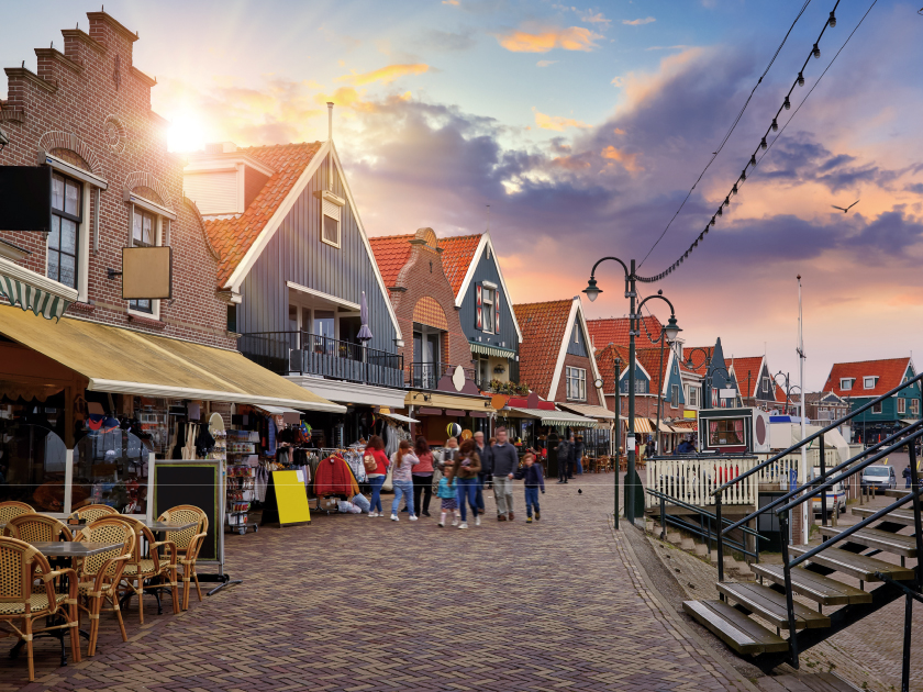 【福倫丹漁村】阿姆斯特丹市以北的一個古老漁村,觀光業也相當發達。現今仍然保留了許多荷蘭特色的建築。這裡可以買到各式各樣的紀念品,團友亦可自費品嚐地道小鯡魚美食。