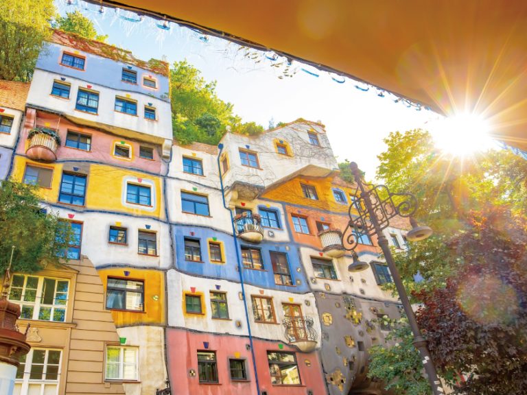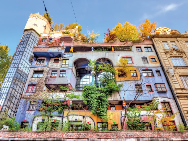 【白水公寓】人與自然共生的建築傑作,這棟外觀與色彩皆獨樹一幟的公寓,由有「奧地利高第」之稱的維也納藝術家百水先生(Friedensreich Hundertwasser)所設計。