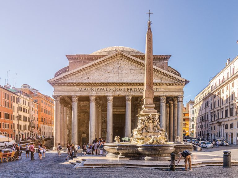 【萬神殿】古羅馬時期的宗教建築,後來被改建為教堂。以壯觀的圓頂和完美的古典幾何比例而聞名,被米開朗基羅譽為天使的設計。