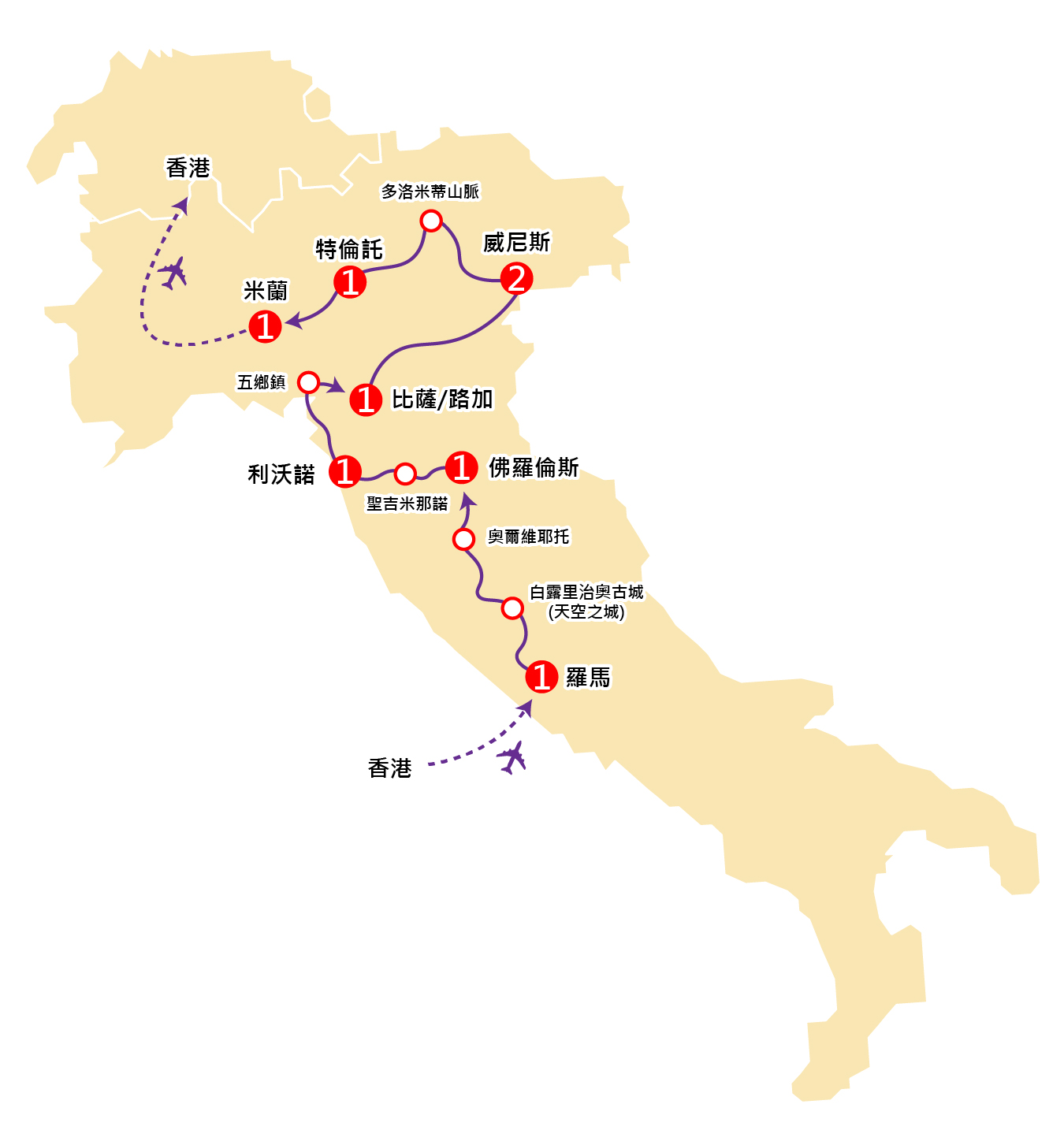 住宿:Gran Duca 或同級酒店