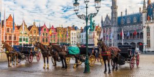 【市集廣場】有著一排特色階梯形山牆建築,這排房子可以說是布魯日的經典明信片場景。鐘樓可以說是布魯日的地標,不管走在哪個街道抬頭都能看到它的蹤影。