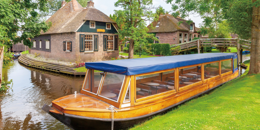 【羊角村】素有「綠色威尼斯」之稱,當地居民曾挖掘地底下的泥煤出售賺錢,不斷開鑿土地後形成一道道狹窄溝渠,居民便順道把溝渠拓寬方便運送物資。