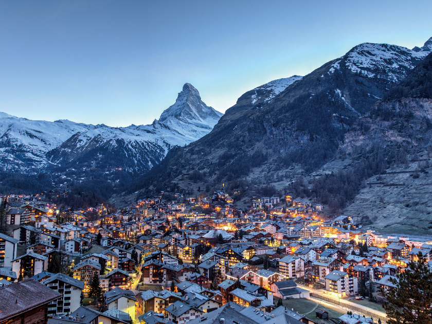 這座阿爾卑斯山城被36座海拔逾4,000米的雪峰環抱,因嚴格的環保政策,城內僅允許電動車與傳統馬車通行。其中,以金字塔造型聞名全球的馬特洪峰(4,478米)堪稱鎮城之寶,其鋒利山脊與完美三角錐輪廓,構成瑞士最標誌性的自然奇觀,日出時分的金色峰頂更是無數攝影師夢寐以求的絕景。