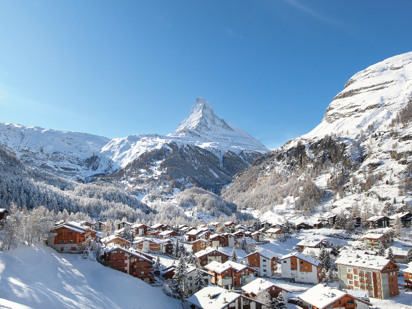 【采爾瑪特】此城周圍由36座4000米以上名峰所環繞,由於環保關係,村內只有電氣化車輛及馬車供行駛。舉世聞名及最具代表性的指標「馬特洪峰」則為此風景區的攝人景緻與重點景觀。