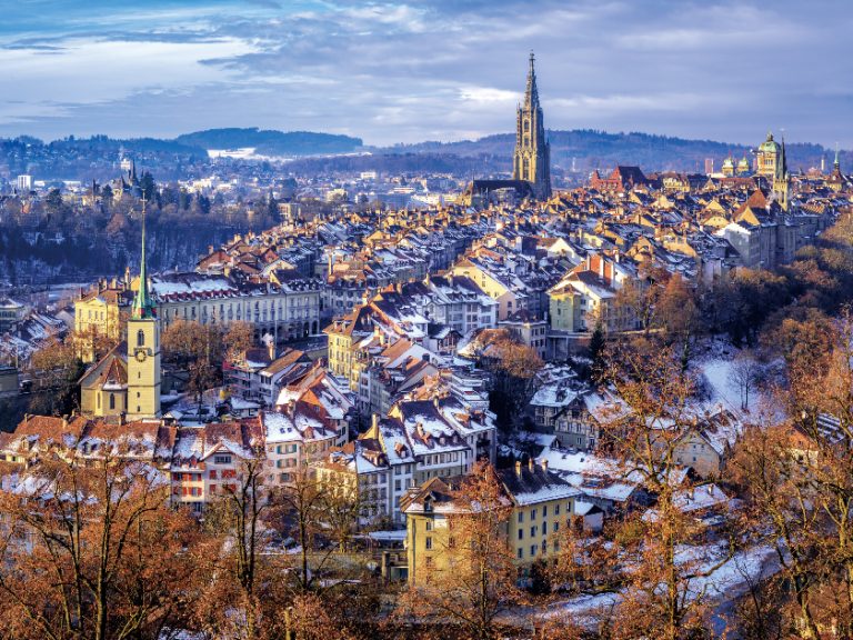 士首都伯恩(Bern)以其獨特的中世紀風貌,於1983年獲聯合國教科文組織(UNESCO)列為世界文化遺產。城市地標「鐘樓」(Zytglogge)建於1218年,這座擁有800年歷史的機械鐘塔至今仍精準運作,每逢整點上演精彩的天文鐘報時秀,見證瑞士悠久的鐘錶工藝傳統。老城區保存完好的砂岩建築與6公里長的拱廊街道,更完整展現了歐洲文藝復興時期的城市規劃精髓。
