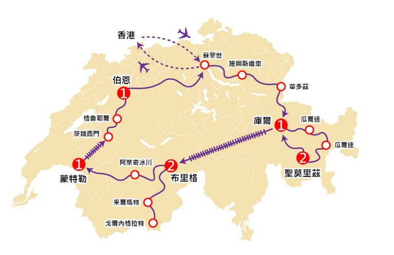 稍後於指定時間前往機場,搭乘瑞士航空直航班機返回香港,航程將於第10日抵達香港國際機場。