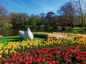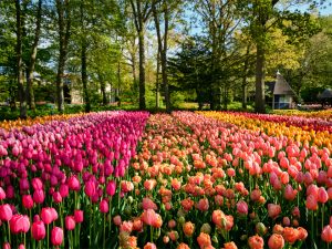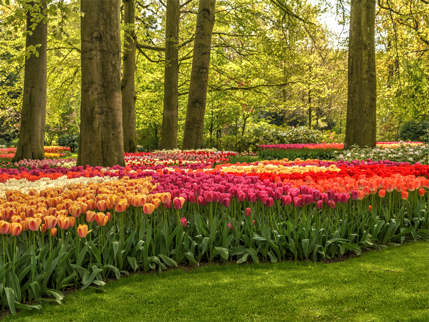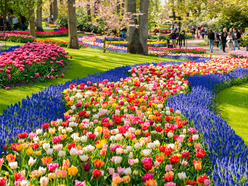 每年3月下旬至5月中都是荷蘭賞花的最好季節。在短短8個星期的花期中,庫肯霍夫公園被鬱金香、水仙花、風信子、以及各類的球莖花構成一幅繁茂的色彩,十分壯觀!