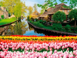 【羊角村】素有「綠色威尼斯」之稱,當地居民曾挖掘地底下的泥煤出售賺錢,不斷開鑿土地後形成一道道狹窄溝渠,居民便順道把溝渠拓寬以方便運送物資。