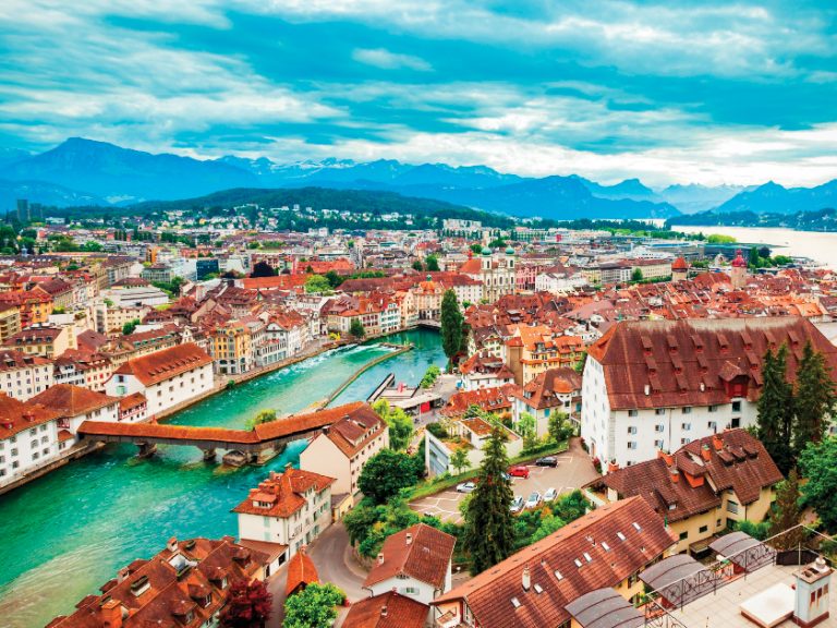 【琉森】通向瑞士中心的大門,位於琉森湖畔如畫的風景區,鑲嵌在令人難忘的山嶺間。因著它的風景名勝、精美紀念品和名錶專門店、巧克力、時裝及糖果等商店,吸引遊人無數。