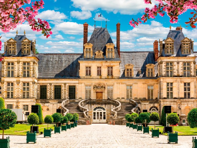 【楓丹白露宮】是路易十四時期的一處王家別墅。宮殿外觀充滿巴洛克風格,室內裝飾極為奢華,包括大理石雕刻、精緻壁畫等。宮殿周圍設有廣闊的花園,林木蒼翠,亭臺遍佈其中,是當時最富盛名的王室私邸之一,也是一處法國王室文化的縮影,反映出法國巴洛克建築藝術的獨特風采。