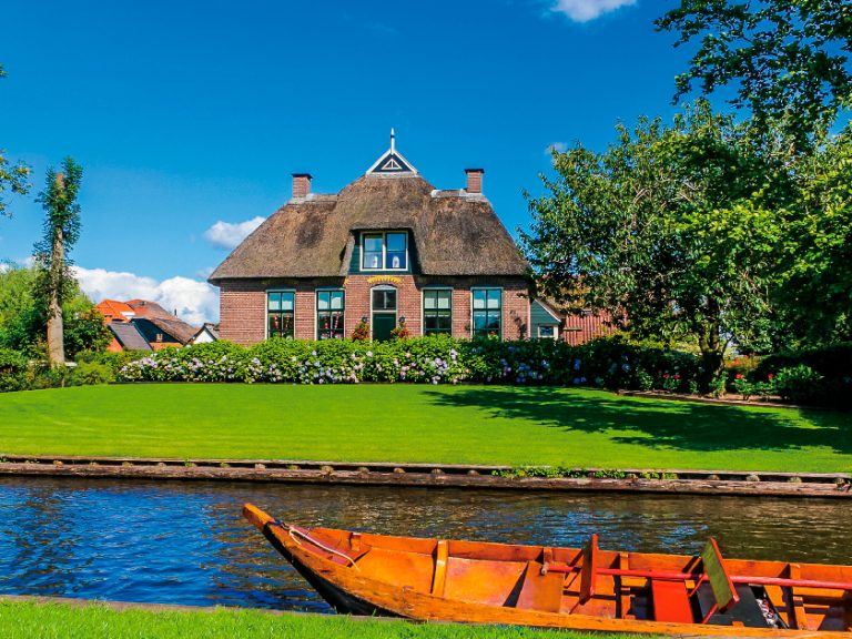 【羊角村】素有「綠色威尼斯」之稱,當地居民曾挖掘地底下的泥煤出售賺錢,不斷開鑿土地後形成一道道狹窄溝渠,居民便順道把溝渠拓寬方便運送物資。