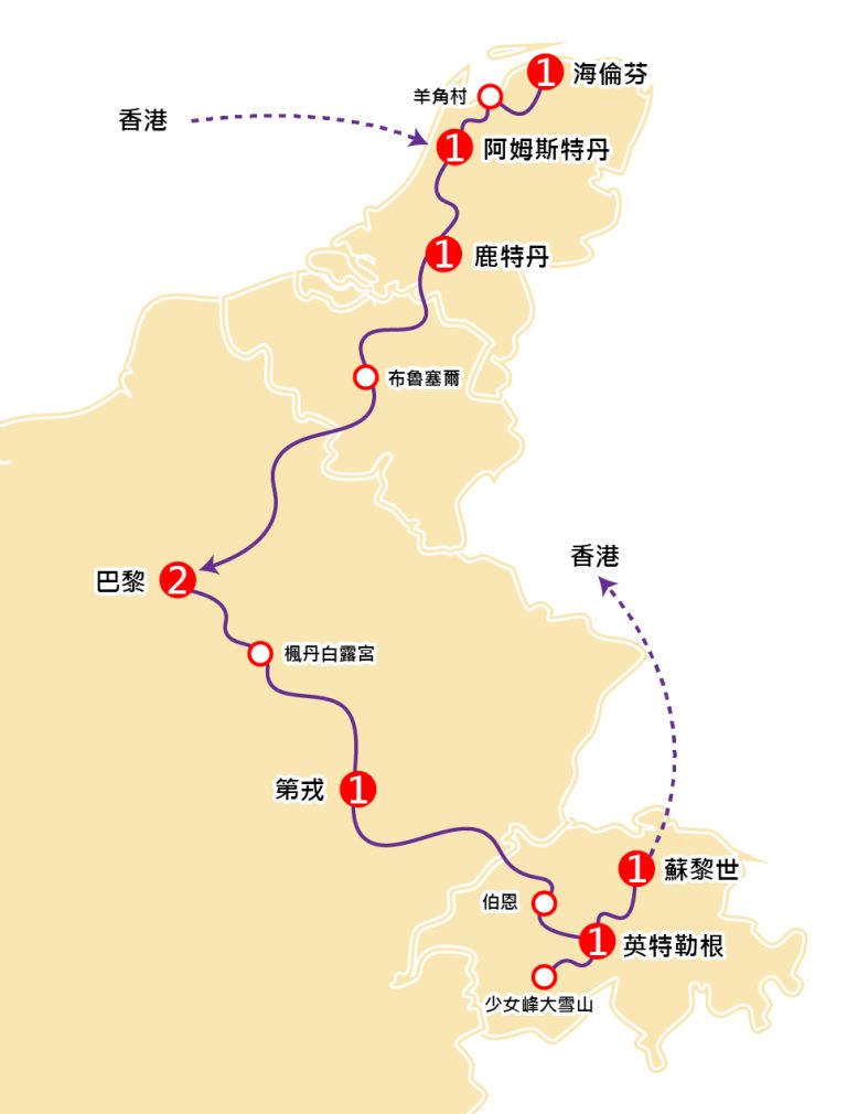 是日晚上集合於香港國際機場,由翠明假期領隊陪同下,乘坐土耳其航空公司客機經伊斯坦堡轉機飛往荷蘭首都阿姆斯特丹。