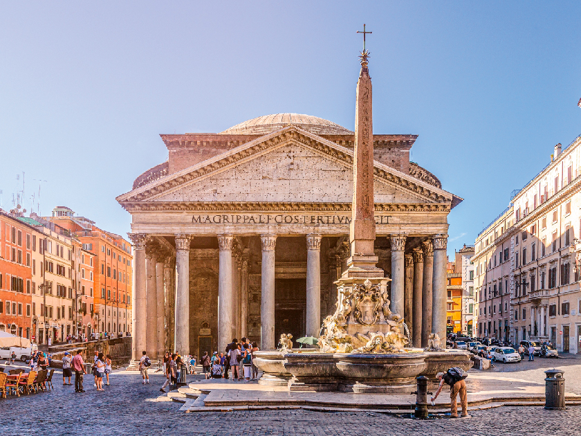 【萬神殿】古羅馬時期的宗教建築,後來被改建為教堂。以壯觀的圓頂和完美的古典幾何比例而聞名,被米開朗基羅譽為天使的設計。