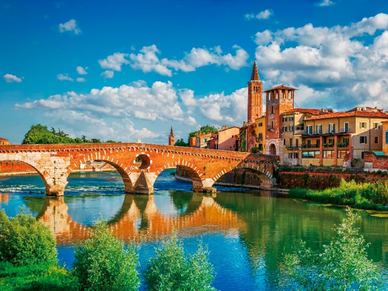 【維羅納】坐落在阿迪傑河畔,不僅因莎士比亞筆下的《羅密歐與茱麗葉》而聞名,更因其保存完好的古羅馬遺跡與中世紀建築,被列為世界文化遺產。