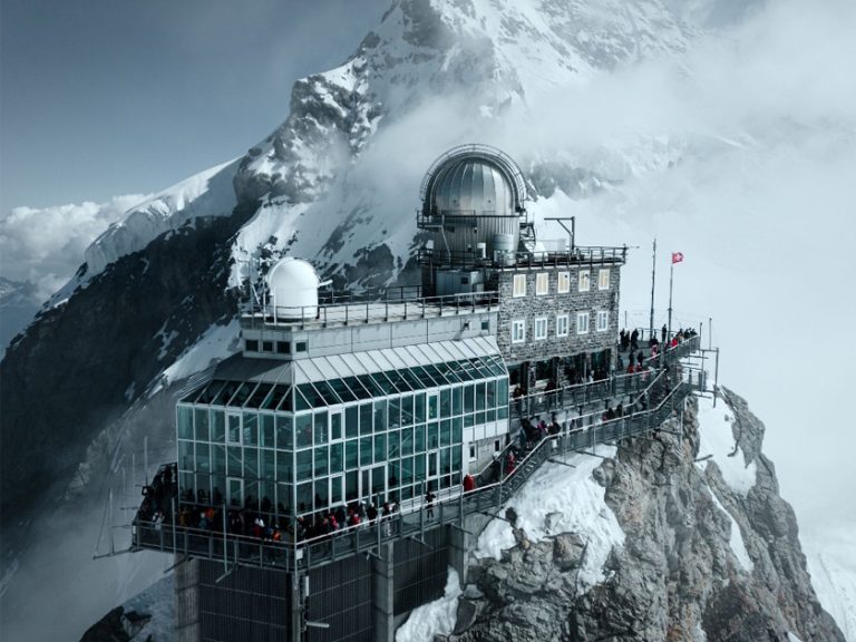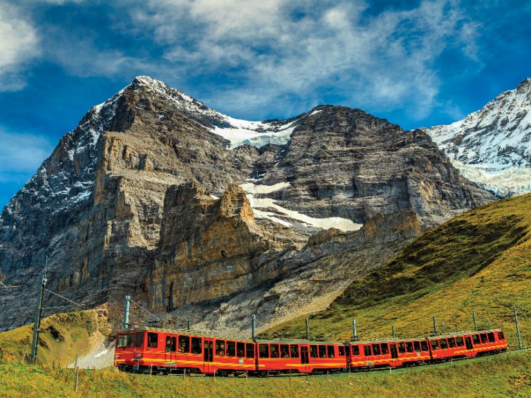 乘坐最新吊車艾格快線及百年歷史齒軌火車 — 登上歐洲最高火車站。海拔11333英呎高之「歐洲屋脊」少女峰,山峰終年積雪,氣勢宏偉壯觀,於斯芬士瞭望台,觀看瑞士最大冰川 — 阿萊奇冰川,群山薈萃,美景飽覽無遺。