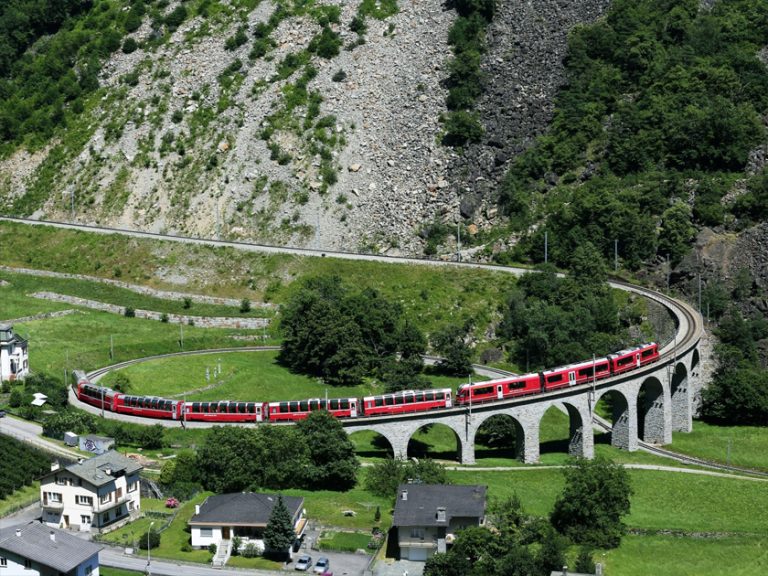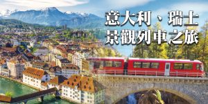 前往車站,乘坐「伯連那快車」前往意大利城鎮——蒂拉諾,穿梭於迂迴曲折的山嶺路線,爬越海拔7,400英呎的伯連那關(Bernina Pass),全程沉浸於迷人的火車旅程。列車途經羅曼語區波芝亞和(Poschiavo),古典優雅;遠眺冰川壯景,隨山勢蜿蜒而下,層巒疊翠,美景俯拾皆是。