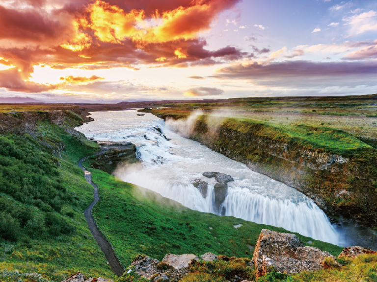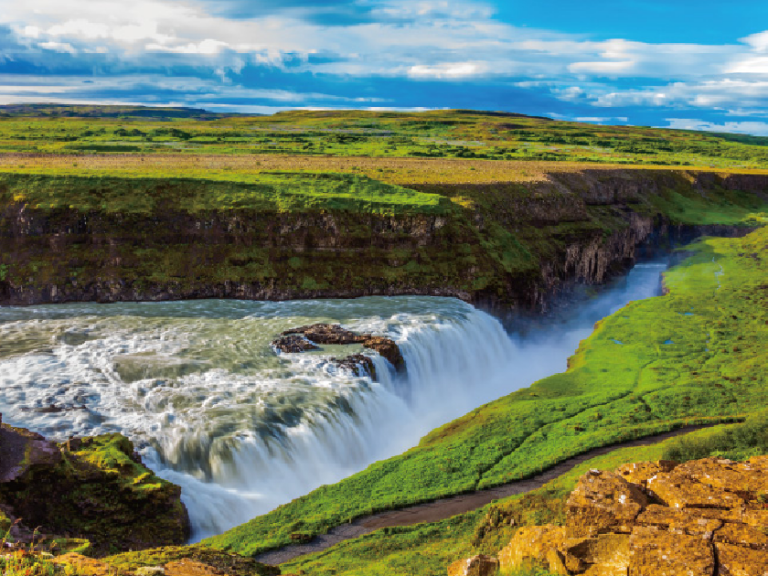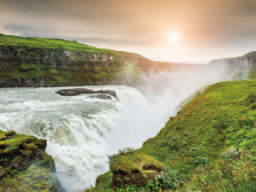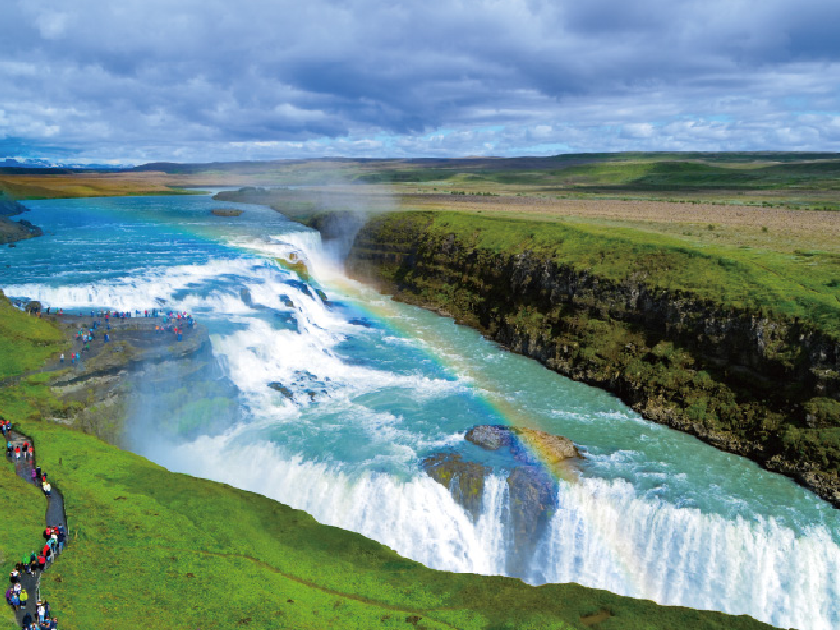 【黃金瀑布】冰島第二大瀑布,以宏偉及美麗著稱。此瀑布分為兩層,河水由附近的冰川融化後匯聚而成。