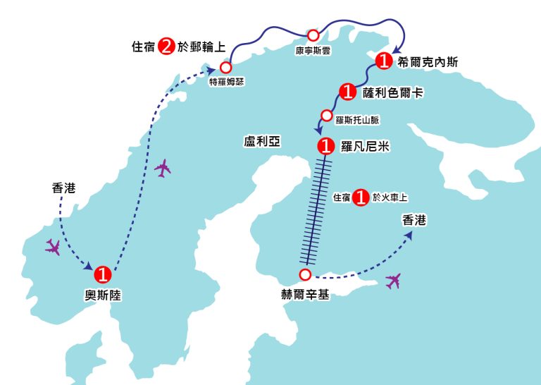 稍後於指定時間乘專車前往赫爾辛基機場,搭乘歐洲或中東航空公司客機,經歐洲或中東城市轉機返回香港。航班預計於第11天抵達香港國際機場。