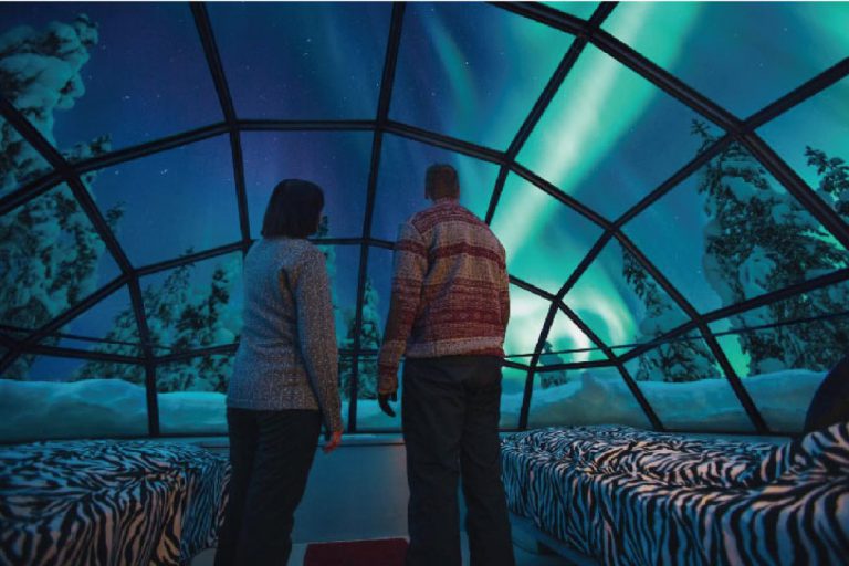 【玻璃屋酒店】躺臥在玻璃屋內,欣賞廣闊夜空,感受寒冬的奧秘。在黑夜中,更可追蹤如夢似幻,可遇不可求的北極光(AURORA BOREALIS),找尋祥和的信念。